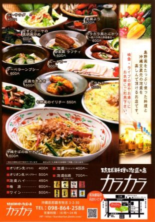 今回の放送では、琉球料理と泡盛の店「カラカラ」の来年登場予定の新メニューをご紹介!!新商品と言いましても、琉球料理のスタンダードなものが多いのですが、近頃の若いウチナーンチュはお家でもあまり伝統的な琉球料理は召し上がらないかと思います。そういう方や、観光客の方にとっては、新鮮なイメージがあるように感じますよね~。また、シニアの方にとっては、懐かしくもあり、喜んでいただけるのではないかと思います!!