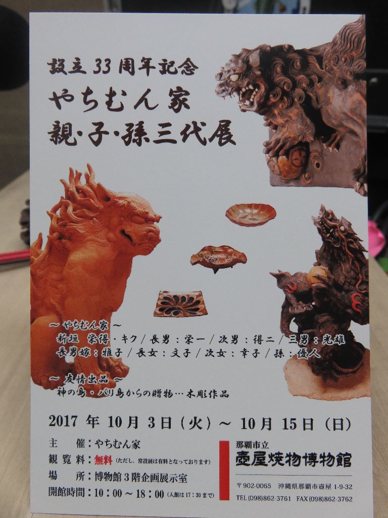 壷屋焼の窯元「やちむん家」の設立33周年を記念した展示会です。やちむん家は現在、88歳になる父・栄得の代に始まり、親から子、子から孫へと技を引き継ぎながら、家族3代で作陶を続ける窯元です。