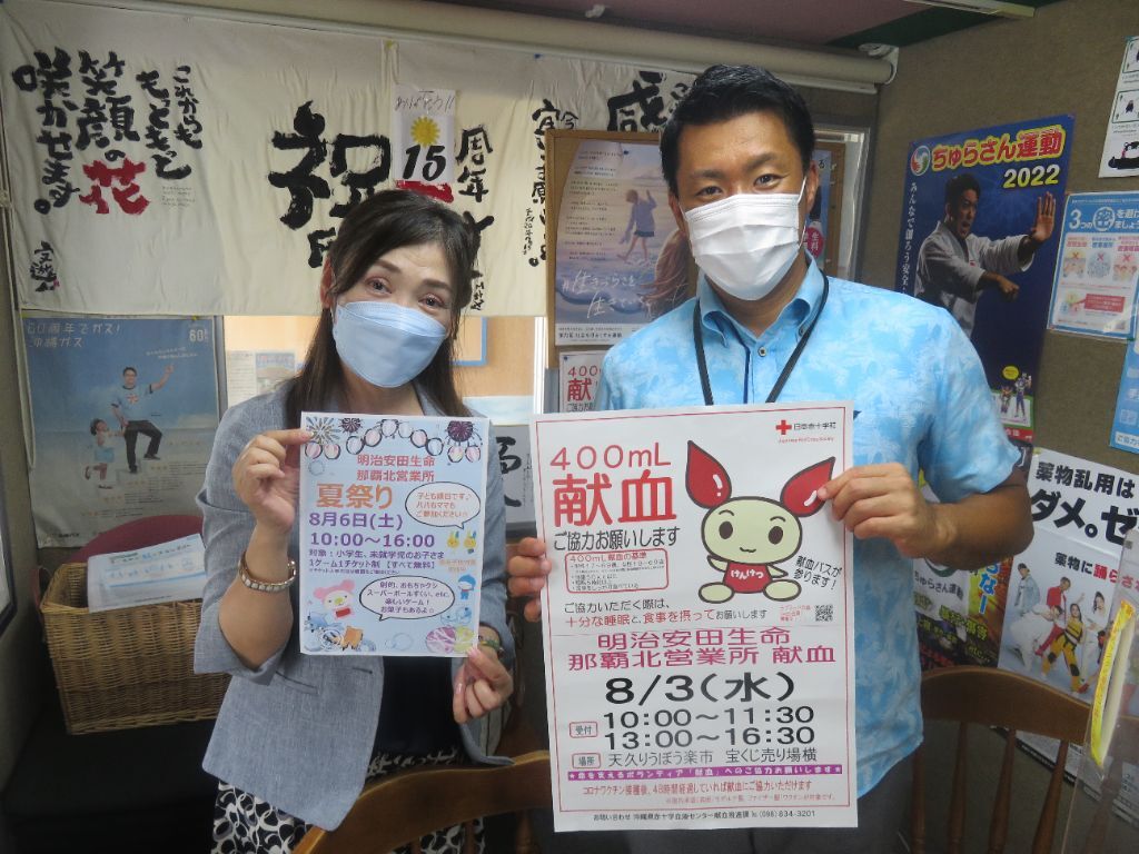 放送では、献血の情報を始め、他にも夏祭り、フードバンクの呼びかけ、あしながMYウォーク& Jウォーキング(FC琉球)、大人のぬりえ、子どものお絵描きコンテスト等など、この夏の多彩なイベント情報を満載でお届けします!!