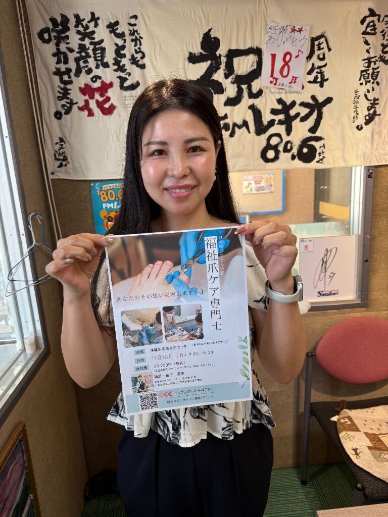 ネイルサロンの他、高齢者の自宅や福祉施設、自治体に訪問し、足の爪切り・フットケアを行う「福祉爪ケア」のサービスを行っています。