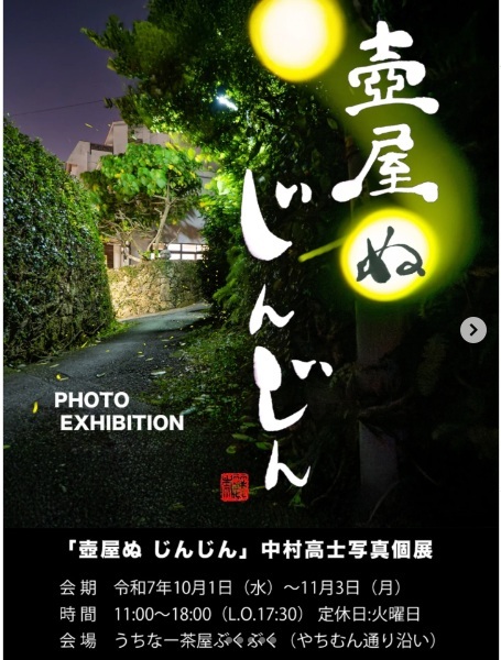 壺屋やちむん通りで壺屋ホタル写真展「壺屋ぬじんじん」が開催されています!ぜひお出かけくださいね。