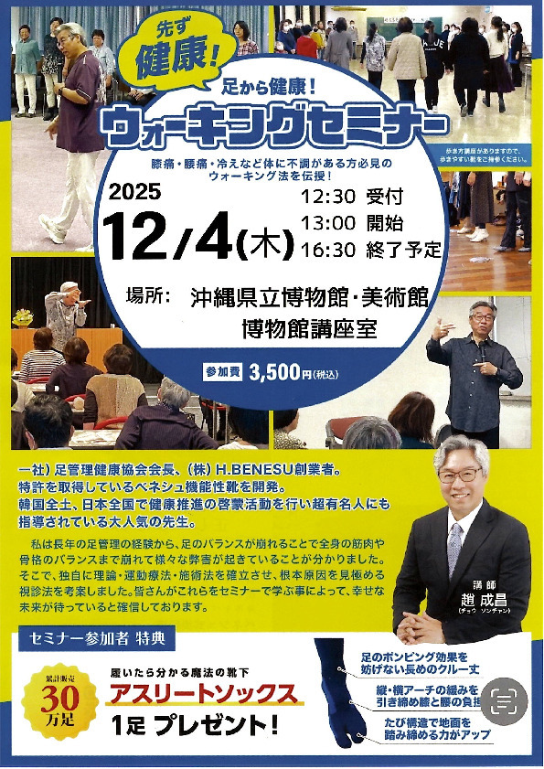 ㈱H.BENESU創業者の趙先生が来沖してウォーキング法を伝授します!!