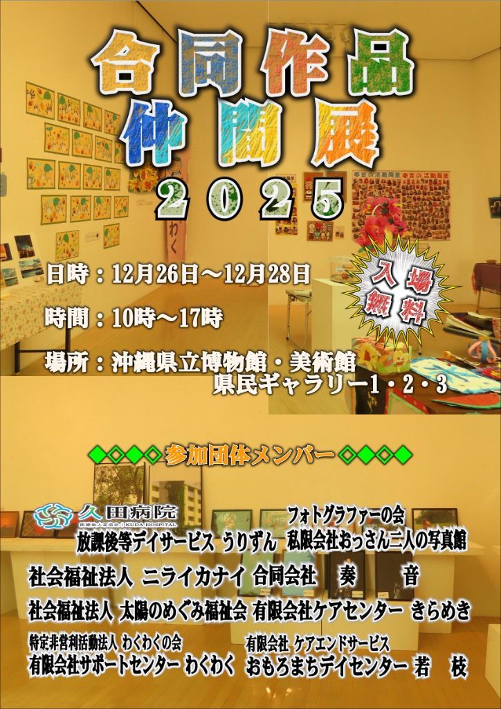 事業所の利用者や園児などが思い思いのアート作品を展示いたします。