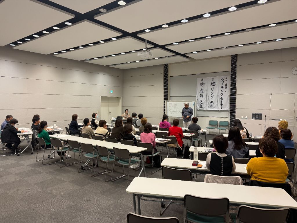セミナー前半は、㈱H.BENESU社長 趙リンダ先生の講話に続き、同社創業者で会長の趙成昌先生による講座がおこなわれていました。