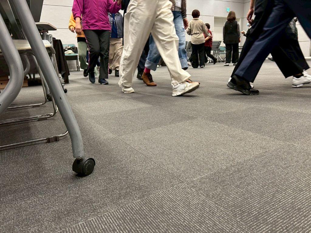 講座のあとはいよいよ実践!参加全員で会場を歩き回りながら趙先生の指導が入ります!普段、ちゃんと使えていなかった本来歩くために働くべき筋肉が活性したため、参加された皆さまは「フーフー」言いながら一生懸命に歩いていらっしゃいました。しかし歩いているうちになんだか軽やかになっていく様子が見られたので、しっかり体感された方も多くいらっしゃったんだと思いました!