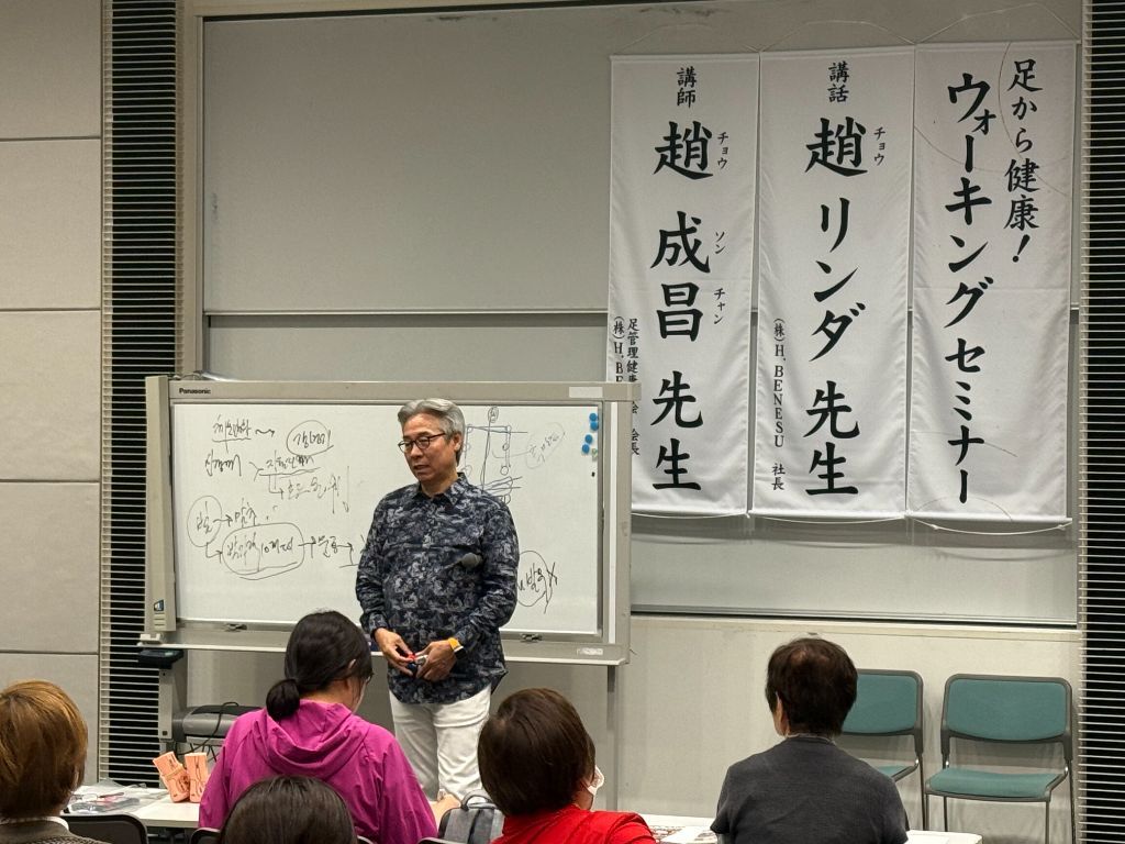 セミナー前半は、㈱H.BENESU社長 趙リンダ先生の講話に続き、同社創業者で会長の趙成昌先生による講座がおこなわれていました。