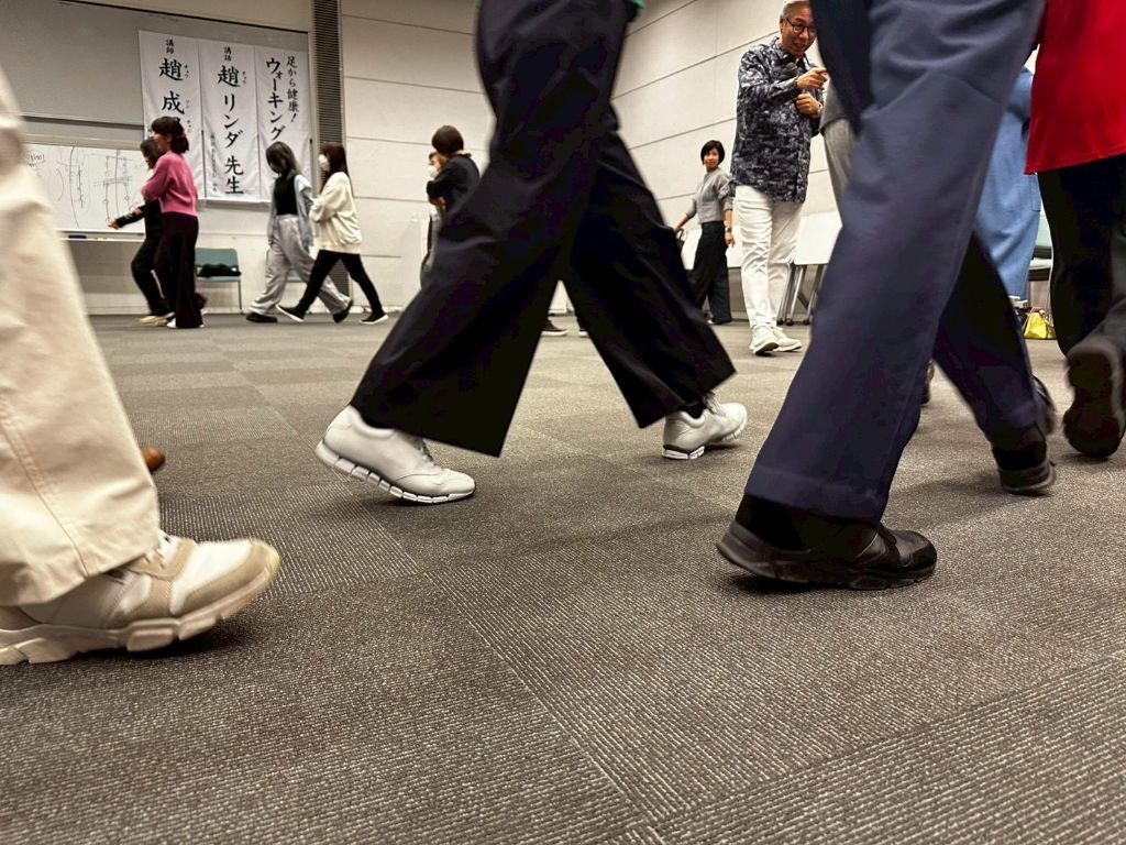 講座のあとはいよいよ実践!参加全員で会場を歩き回りながら趙先生の指導が入ります!普段、ちゃんと使えていなかった本来歩くために働くべき筋肉が活性したため、参加された皆さまは「フーフー」言いながら一生懸命に歩いていらっしゃいました。しかし歩いているうちになんだか軽やかになっていく様子が見られたので、しっかり体感された方も多くいらっしゃったんだと思いました!