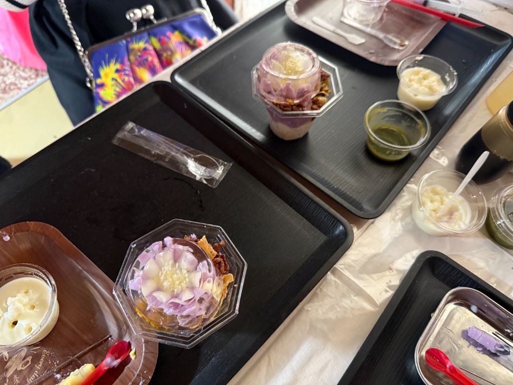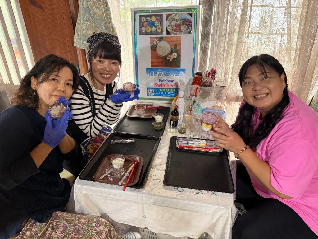 FMレキオで城間さんと一緒に番組パーソナリティを務める、レインボースイッチーズ代表の上原由美子さんによる“フラワーアートゼリー”のワークショップがありました。フラワーアートゼリー制作に挑戦した方々は、ゼリーの中にどんな花が咲くのかイメージしながら、でも最後の工程までその全体像がわからないというドキドキを楽しみながら夢中で作っていらっしゃいました!