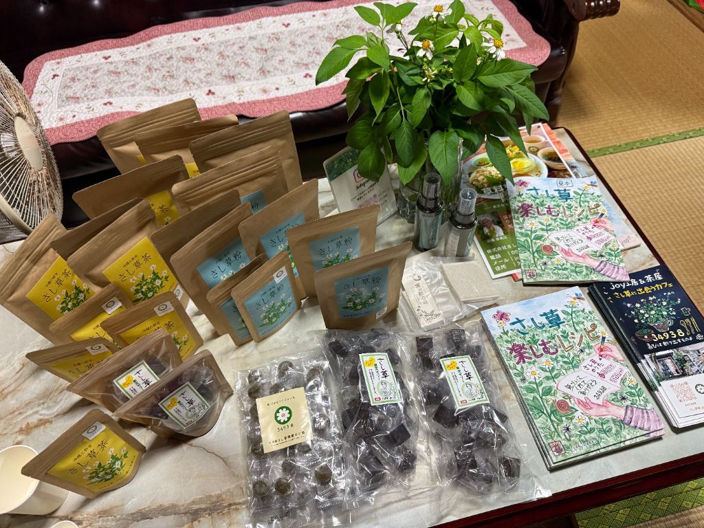 南城市大里にあるカフェ・喫茶の「JOY工房&茶屋」の出店がありました。JOY工房さんは、沖縄に自生する野草“さし草(シロノセンダン草)”の専門店です!